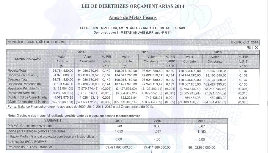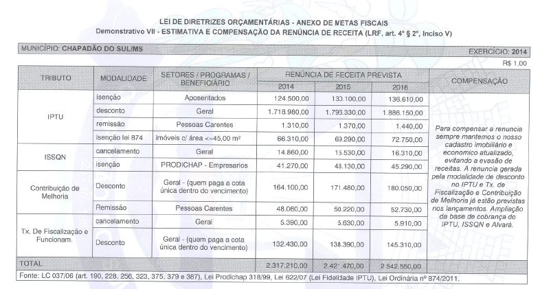 "Dispõe sobre as Diretrizes Orçamentárias para o exercício de 2014 e dá outras providências".