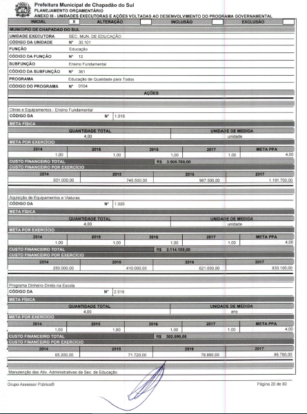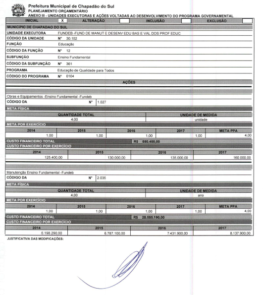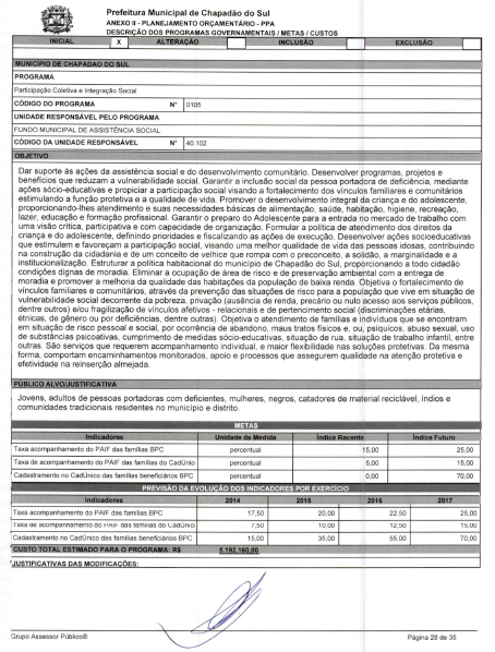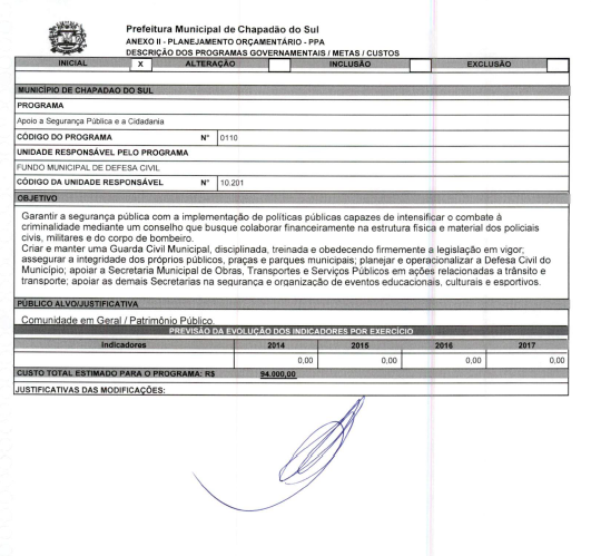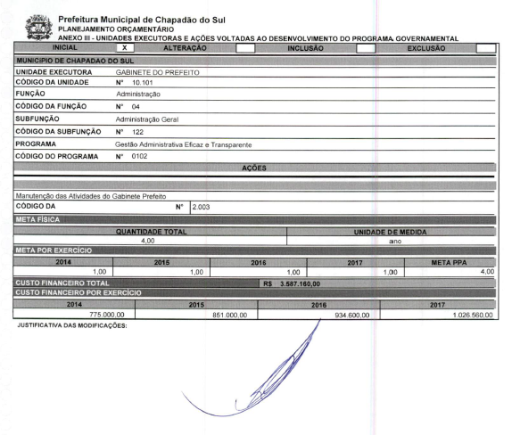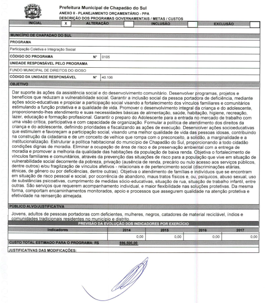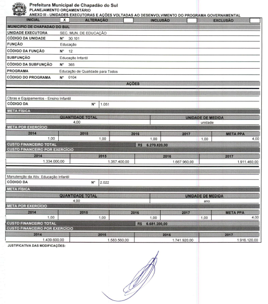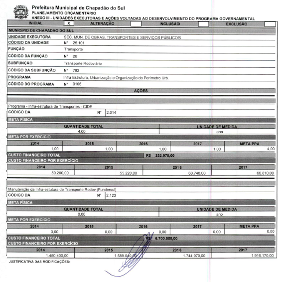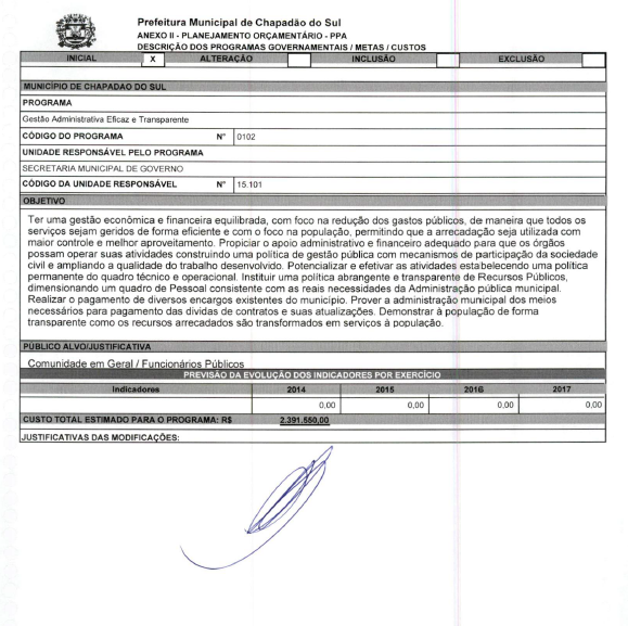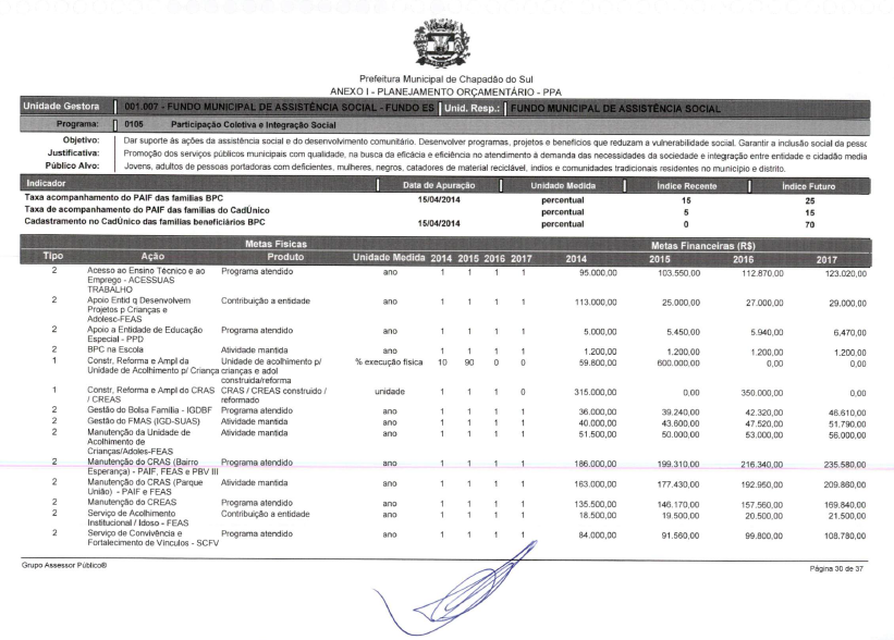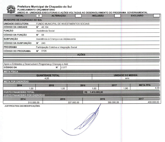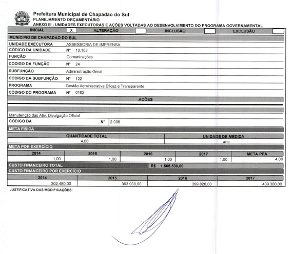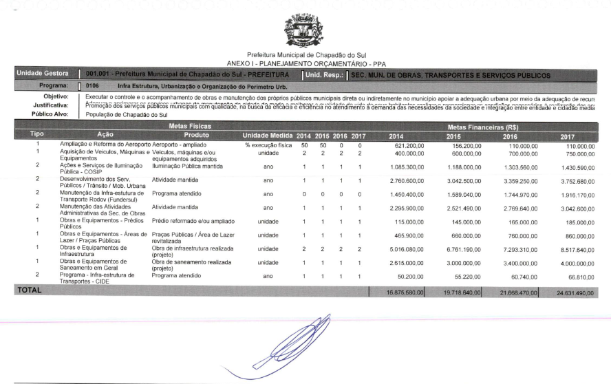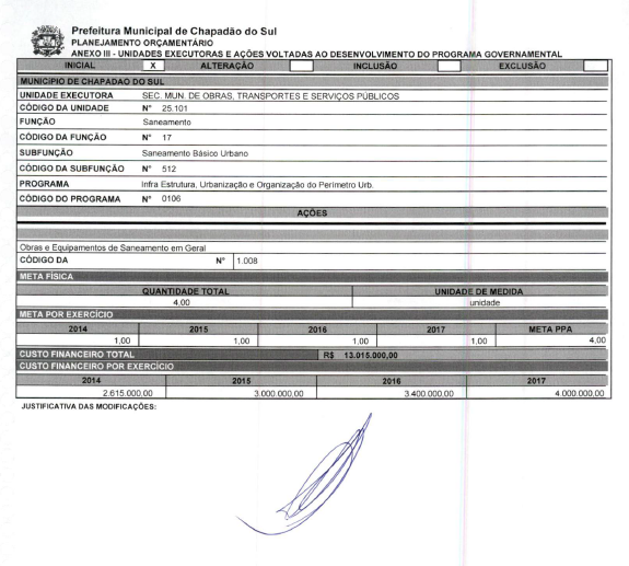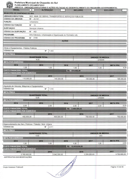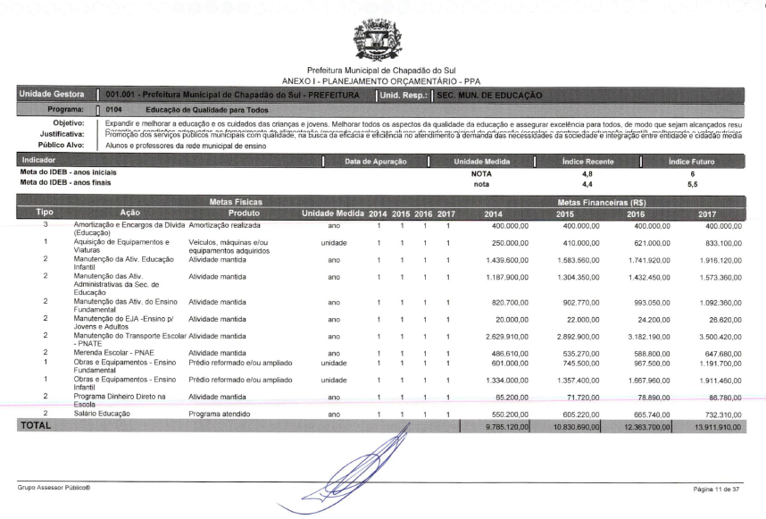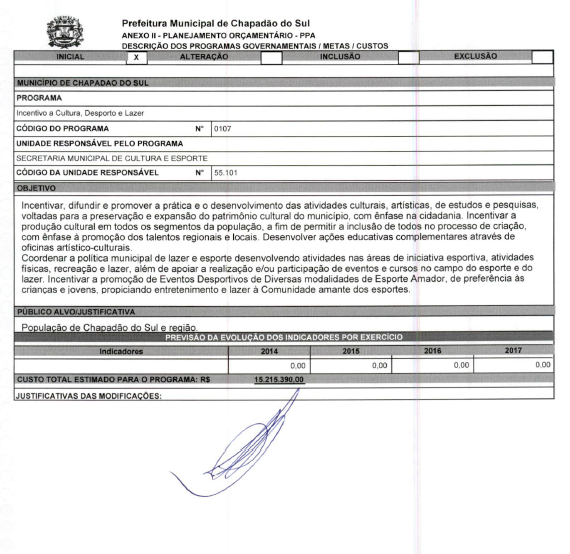 Esta lei e seus respectivos anexos institui o Plano Plurianual para o quadriênio 2014/2017, em cumprimento ao disposto no art. 165, parágrafo 1°, da Constituição Federal, estabelecendo para o período, os programas com seus respectivos objetivos, indicadores e montantes de recursos a serem aplicados em despesas de capital e outras delas decorrentes e nas despesas de duração continuada.